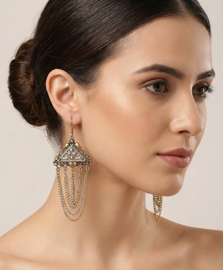 Because they feature both gold and silver tones, these earrings are incredibly versatile. They bridge the gap between your silver and gold jewelry collections. Pair them with a black dress for a night out or a white Kurti for a sophisticated ethnic look.