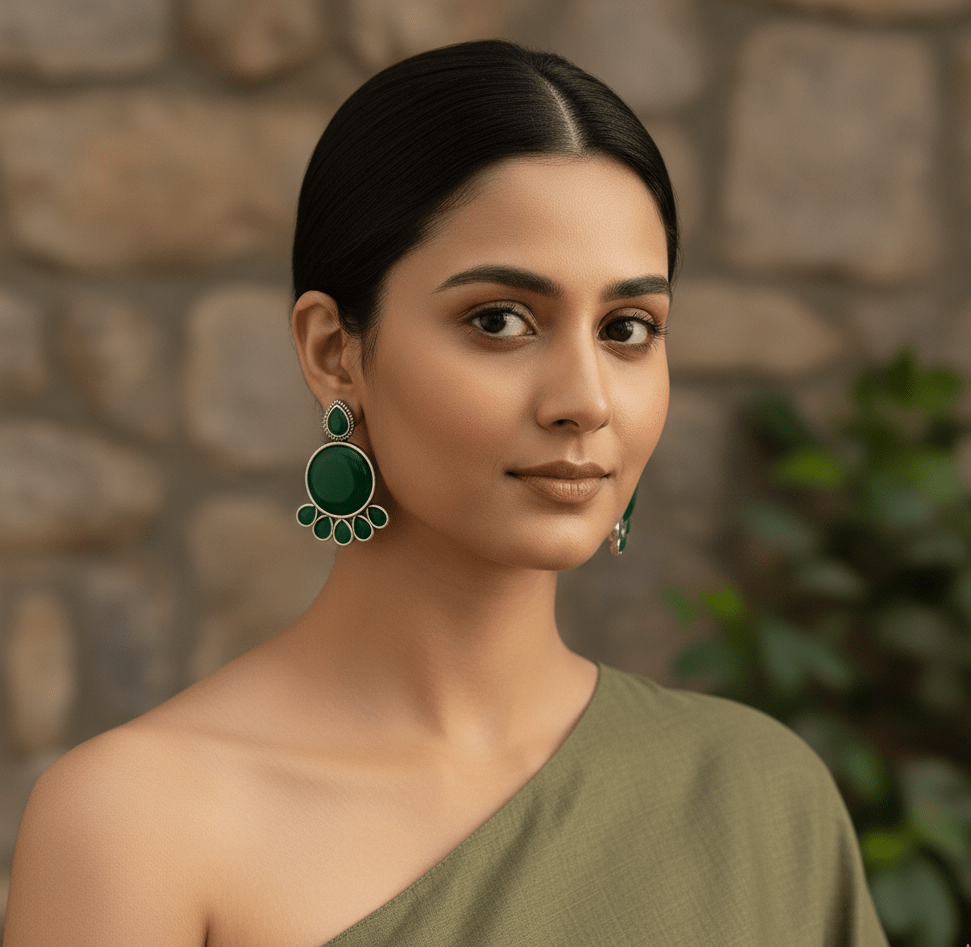 Modern Ethnic Glamour: Deep Green Statement Drops