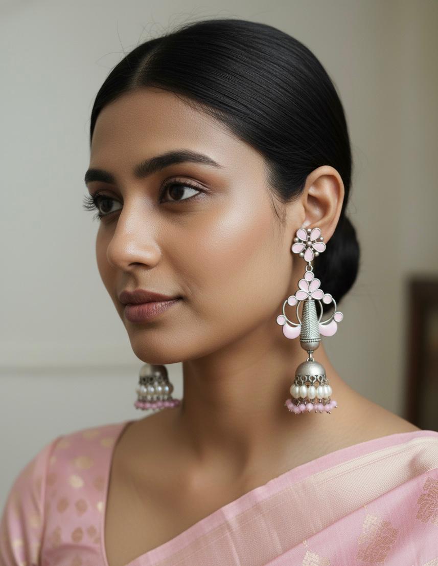 Contemporary Tradition: Pink Enamel Jhumka Drops