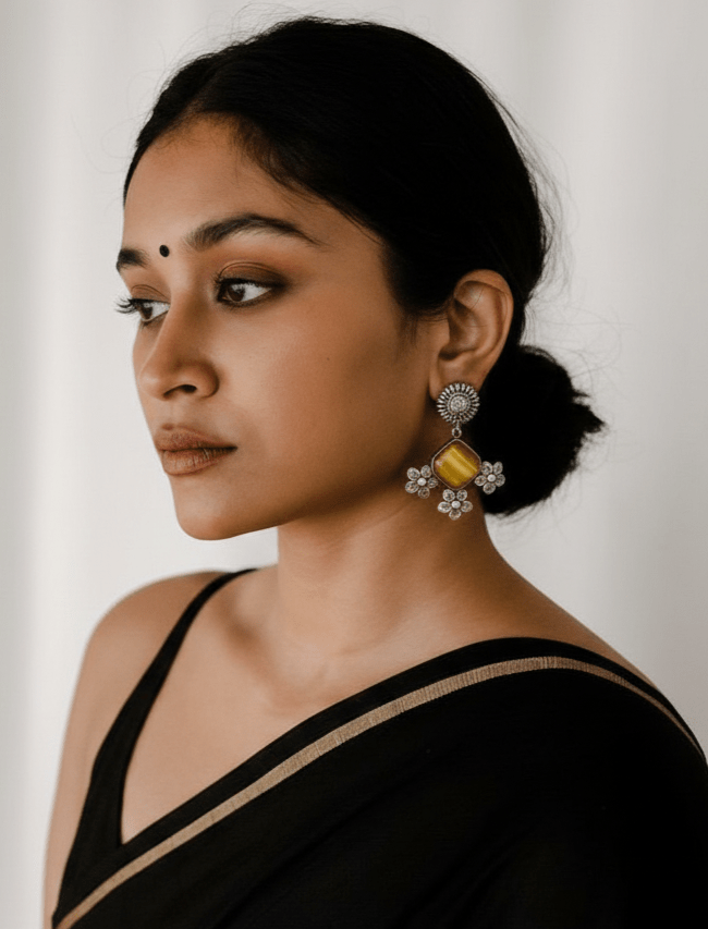 Style: A bold, medium-drop earring secured with a post, perfect for wearing with Sarees, Osari (Kandyan), or modern ethnic wear.