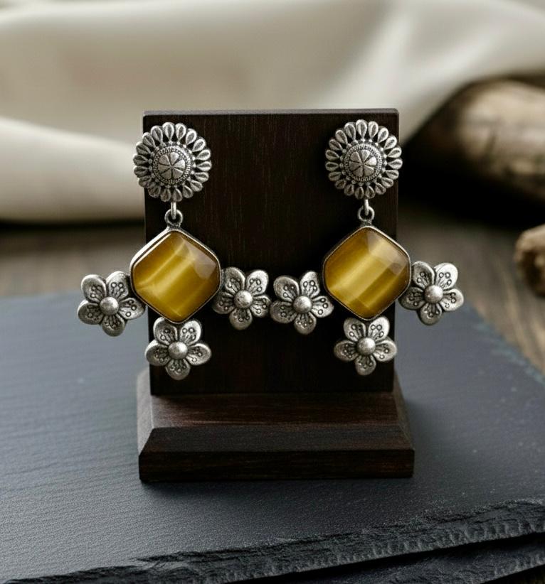The Kandyan Flower Statement Earrings | Traditional Flower & Silver Tone Accents
